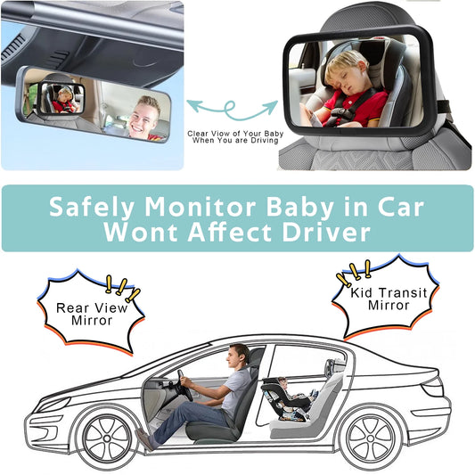 Baby Car Mirror for Baby,Seat Safely Monitor Infant Child in Rear Facing Seat, Wide View Shatterproof Adjustable Acrylic 360° for Backseat, Crash Tested and Certified for Safety