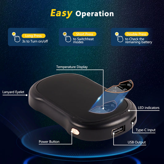 Hand Warmers Rechargeable,2 Pack 10000mAh Electric Hand Warmer,2 in 1 Portable Pocket Heater and Power Bank,3 Levels Long Lasting Reusable Handwarmer for Outdoors Camping,Hunting,Golf