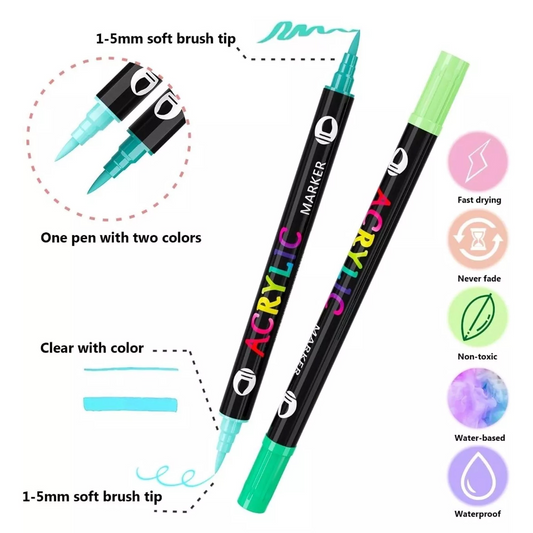 Acrylic Paint Markers,36 Pack 72 Colors Dual Tip Dual Color Acrylic Markers for Stone, Rock Painting, Paper, Pumpkin, Wood,Egg,Canvas,Ceramic,Fabric, leather,Glass,DIY Crafts,Acrylic Paint pens