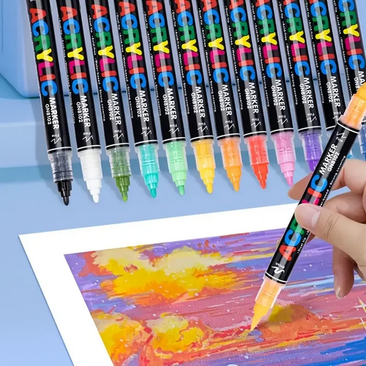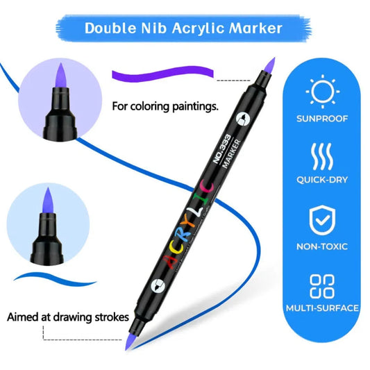 Acrylic Paint Markers,24 Pack 48 Colors Dual Tip Dual Color Acrylic Markers for Stone, Rock Painting, Paper, Pumpkin, Wood,Egg,Canvas,Ceramic,Fabric, leather,Glass,DIY Crafts,Acrylic Paint pens