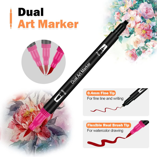 ASOVNXF 120 Colors Dual Tip Coloring Markers, Fine Tip and Brush Tip Art Marker Pens For Adult Coloring Hand Lettering, DIY Art Painting Supplies Kit, Aesthetic Cute Art Supplies
