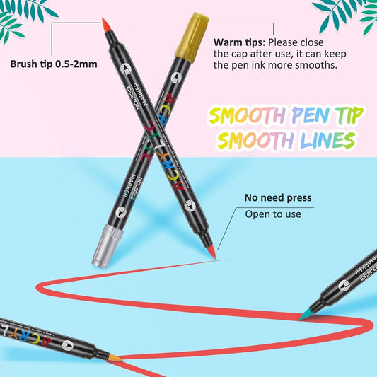 Acrylic Paint Markers, 36 pcs 72 Colors Dual Tip Dual Color Acrylic Markers, Tooli Art Acrylic Paint Pens for Stone, Wood, Calligraphy, Canvas, Ceramic, Metal, Glass, Rock Painting, DIY Crafts