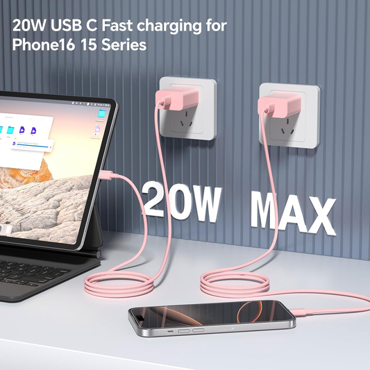 ASOVNXF Charger for iPhone 16 15 Charger, 2 Pack 6FT Long USB C to C Cable with PD 20W Fast Charger for iPhone 15/16 Series, Pad Pro/Air/Samsung, Pink