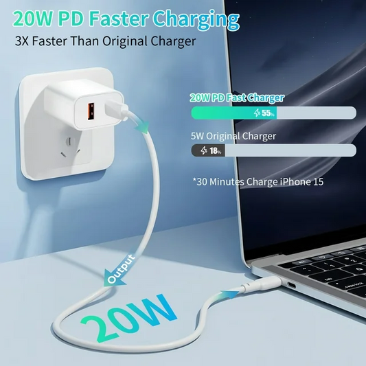 Charger for iPhone 16 15 Charger,20W PD+QC3.0 USB C Dual Port USB C Charger Block with 10FT USB C Charger Cable Compatible with iPhone 16/16 Pro Max/15 Series/iPad Pro,iPad Air 5/4,Mini