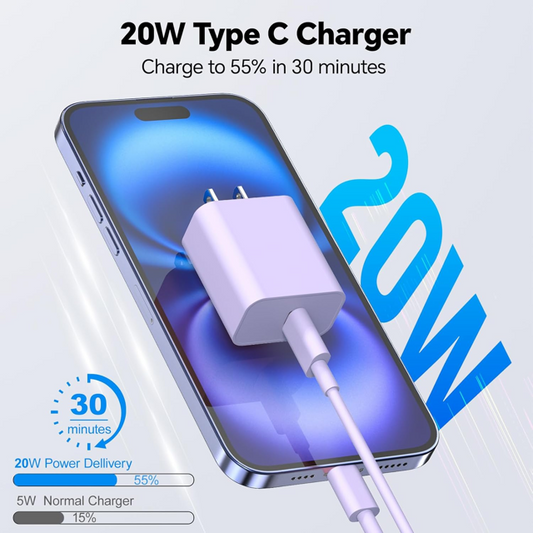 Charger for iPhone 16 15 Charger Fast Charging iPhone 16 Pro Max Charger 6FT 2-Pack iPad Pro Charger for iPhone 16/iPhone 16 Pro/iPhone 16 Pro Max,iPad Pro,iPad Mini/Air4/Samsung/Android,Purple