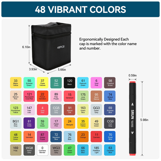 Coloring Markers, ASOVNXF 48 Colors Dual Tips Art Markers Sketch Pens Set, Art Set Drawing Markers Pen, Art Supplies for Adults Coloring Painting, Sketching, Gifts for Teens Girls Boys Artists
