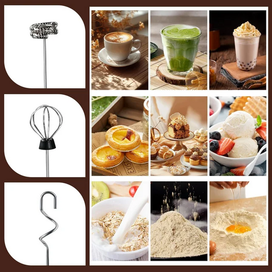 Handheld Milk Frother Wand for Coffee with Stand, Rechargeable Electric Whisk with 3 Heads 3 Speeds Drink Mixer Coffee Frother For Coffee, Latte, Cappuccino, Hot Chocolate,Egg,White
