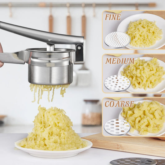 Large Potato Ricer,Heavy Duty Stainless Steel Potato Masher and Ricer Kitchen Tool,3 Interchangeable Discs,Ricer Kitchen Tool-Mashed Potatoes,Masher for Fruits,Vegetables,Baby Food