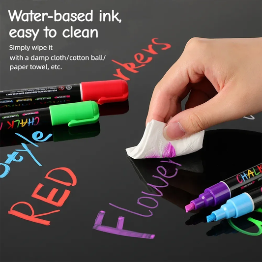 Liquid Chalk Markers Pens - 12 Colors Washable & Wet Erase Neon Chalk Makers for Blackboard, Chalkboard Signs, Glass Window, Graduation Celebration Art Diy Craft - Erasable Window Markers for Cars