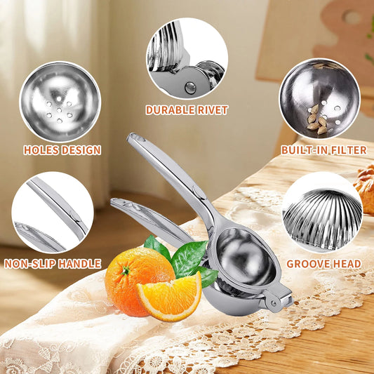 Lemon Squeezer Stainless Steel Citrus Press - Large Heavy Duty Fruit Squeezer for Drinks - Rust-proof Non-Slip Manual Hand Juicer Is Ideal for Juicing Lemons,Limes,Small Oranges