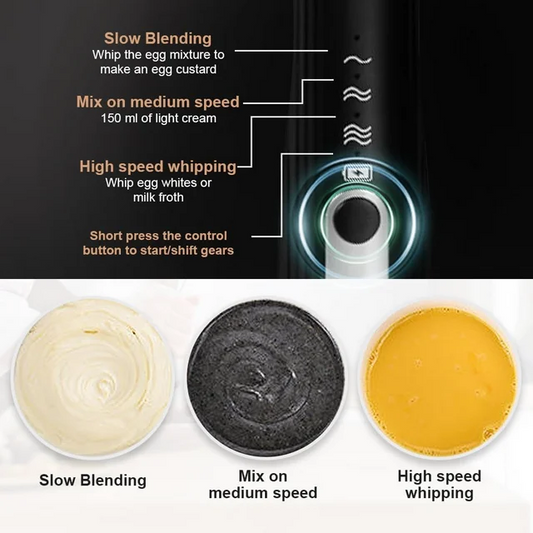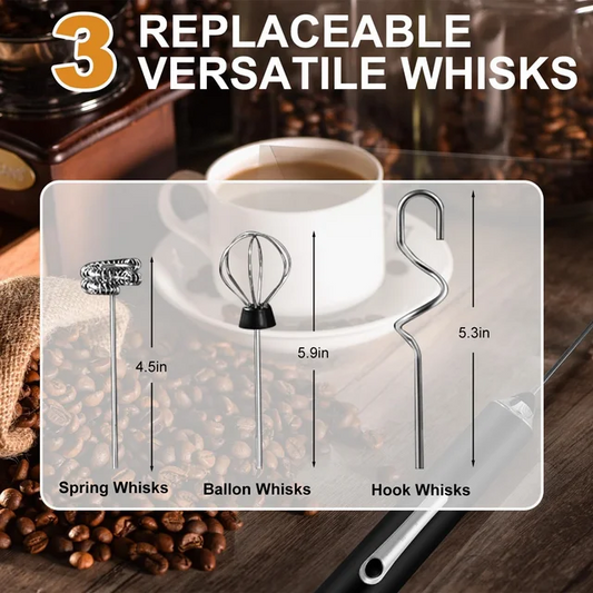Milk Frother Handheld for Coffee, Electric Whisk 3 Speed Adjustable, Drink Mixer with Stainless 3 Whisks, Rechargeable Hand Frother Wand, Foam Maker for Latte Cappuccino,Black