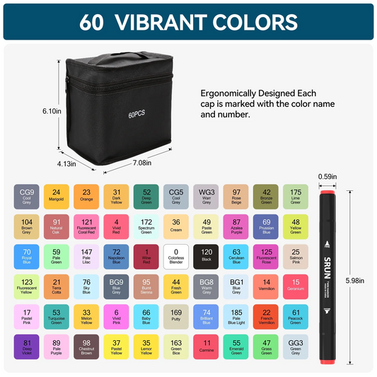Markers Set, ASOVNXF 60 Colors Dual Tips Art Markers Sketch Pens Set, Art Set Drawing Markers Pen, Art Supplies for Adults Coloring Painting, Sketching, Gifts for Teens Girls Boys Artists
